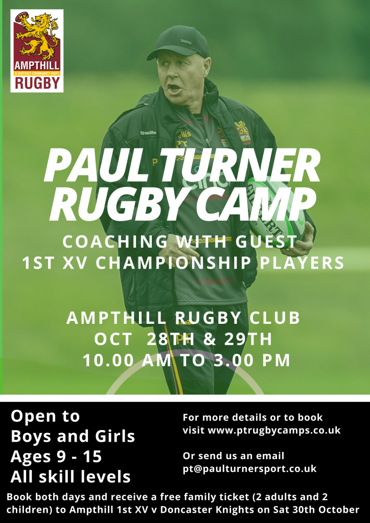Ampthill & District Community Rugby Club members will receive a 25% discount if booking more than one child from the same family.