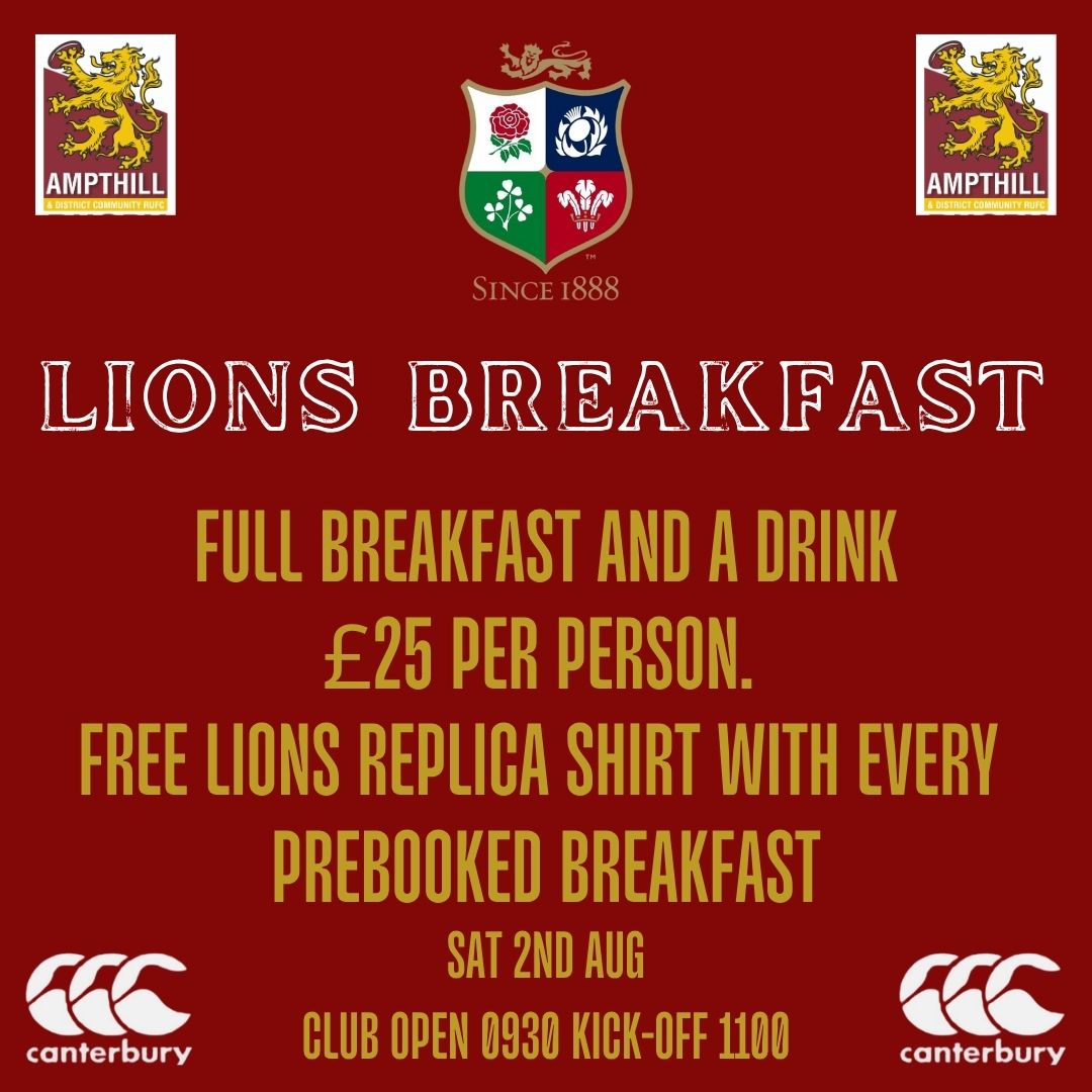 Ampthill Rugby Club invites members and rugby fans to The Lions Breakfast on Sat